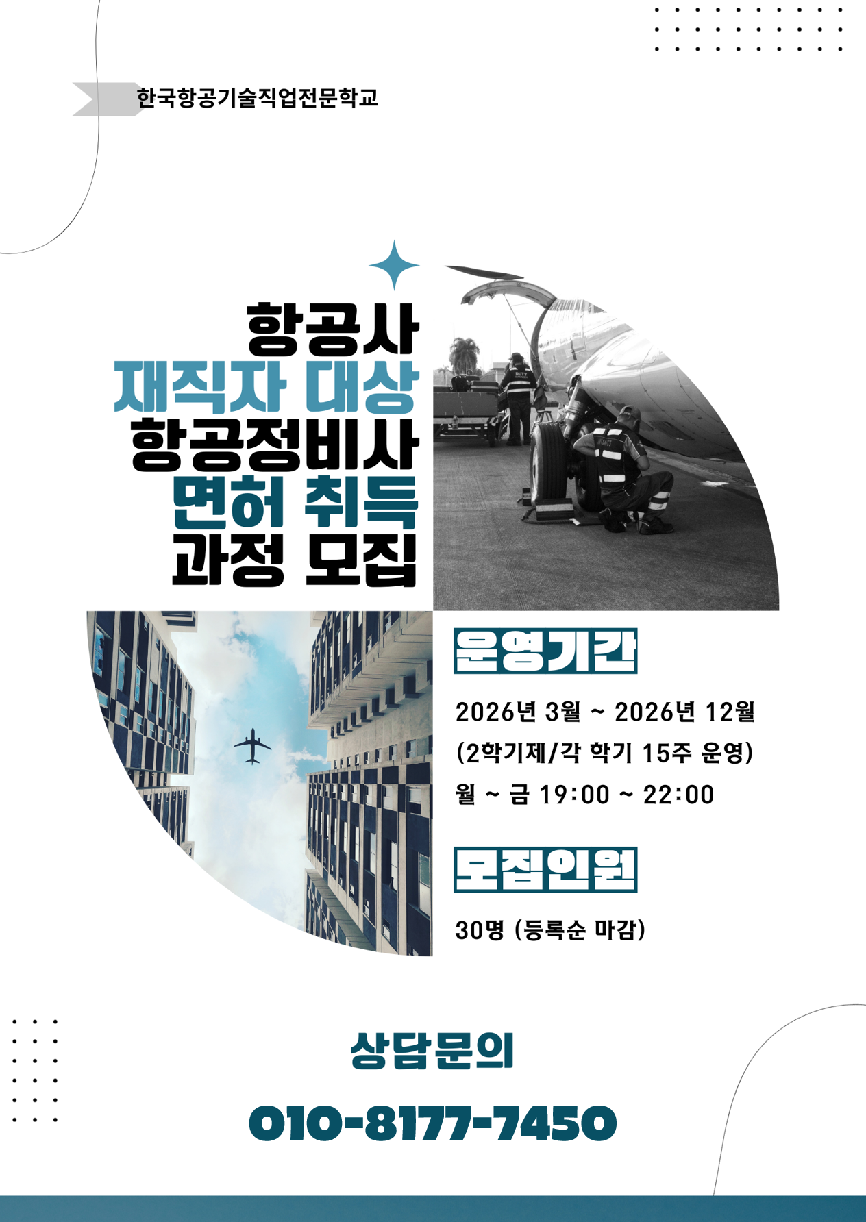 (주)한국항공기술직업전문학교 | 학점은행제 평가인정교육훈련기관 | 사업자 등록번호: 109-87-01743