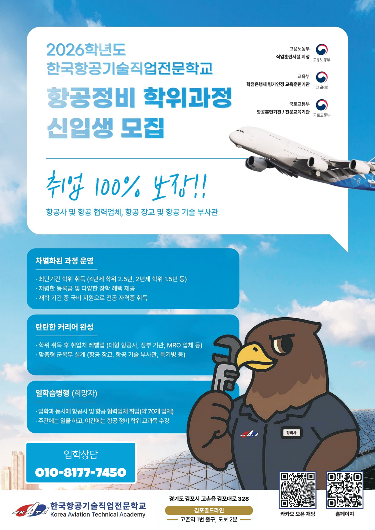 국가공인 항공자격 취득 + 학위 + 취업까지 한 번에!